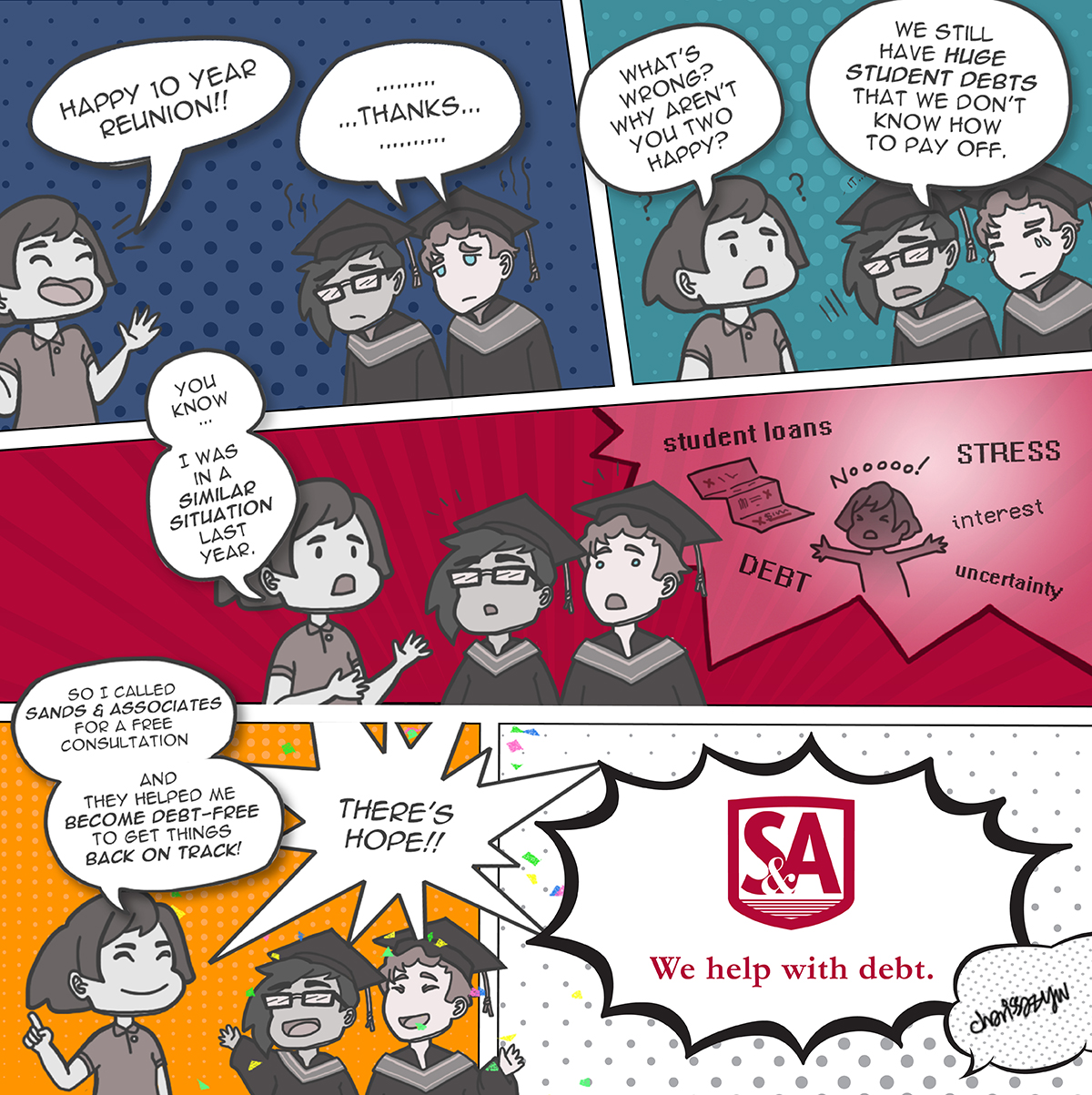Enjoy your next class reunion without your student loan debt! Meet with Sands & Associates to find out how you can become debt-free – book your free confidential debt consultation today.