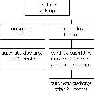 - If during the first nine months of your bankruptcy your income is above the Superintendent’s Monthly Income Standards, the period of bankruptcy may be extended by an additional 12 months, to 21 months in total. You would be eligible for automatic discharge once the 21-month period has passed, provided your surplus income is paid.